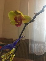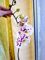 Вот и зацвела орхидея! Столько раз заказывать этот сорт и получить маленькую, хилую миниорхидею. При покупке этого сорта, организатор не уточнила, что это мини. Так что за 500 рублей за орху, вы не получите ничего хорошего. Лучше брать дороже и с цветоносами, чем долго ждать, когда же эта орха вырастит и даст цветонос и то не факт, что он будет хорош. Это моё мнение про цветы, а за работу организатора, спасибо