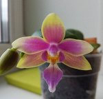 Я б сказала большие пришли)(По сравнению с предыдущим моим заказом редких орхов, там вообще малюська один пришел)) Один с 2мя поломанными лепестками, у взрослого листка видно что давний залом, а у молодого видимо до находки не аккуратно ехал. Ну ни чего, корни хорошие-это главное, а листья вырастут еще) Спасибо оргу за цветочки) добавлю коммент: на 13.08 taikan apollo дал цветонос, к декабрю на цветоносе еще 3 цветоноса вылезло и они все в цветах, такой шикардос получился)))цветы крупные. В декабре у желтого вылез цветонос и в январе уже появились 1е цветочки. Цвет как на фото, я прям полюбила его цвет)) Сочитание лимонного и розового, просто бомба))) Красотища ммм))