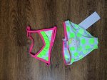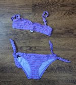 Вещи изумительные для маленькой принцессы, качественные, яркие, без посторонних запахов, марка французская, на бирках есть аннотация на русском. Прикреплю фото, чтобы можно было разглядеть милоту. Лонгслив суперский с бантиками и пайетками, ОГ 50 см, рукав 32 см. Платье шикарное с пайетками, нашивками, бантиками и бусинами, ОГ 58 см, длина по спинке 53 см. Купальник в горошек огонь, но мне кажется маломерит, трусики ОБ 44 см, а верх маленький ОГ 40 см, на пластиковой застёжке. Фиолетовый купальник другой марки - Голден Леди, произведён во Вьетнаме, плавки регулируются завязками , бандо 24 см, тянется, пришёл в плотном пластиковом конверте. Перчатки классные, 7,5 см. Панама в окружности 55 см. Трусики очень приятные, 100% хлопок, марка Санрио - ветка Сан Сити, ОБ 40 см. Вместо банданы мне положили бандо, написала организатору ... и тишина