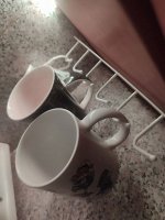 6 кружек конечно на подставку не входит, хотя и есть крючки, максимум моих кружек можно разместить только 3, через один крючок. Если вешать на каждый, то сваливаются, так как диаметр кружек не входит друг с друго В Тарелках под первое и салатниках на картинке не видно, что рисунок из золота, на солнце очень красиво выглядет