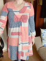 Платье в размер точно. Мне по бедрам чуть большевато. Но зато руки еле просунула. Сшито странно, на худые руки. Но у меня вроде не супер толстые и туго-туго. Попробую переделать, уберу манжет