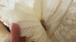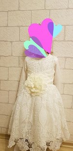 Платье красивое, хорошего качества. Все кружева ровные, очень аккуратно пошито. Цветок отстегивается, на булавке. На рост 100см хорошо, даже чуток с запасом. Платье фирмы Зоя Флауэр, у нас уже было платье этой марки, тоже хорошее. На фото еще не постирано, поэтому мерили на кофточку. Доставка в срок