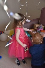 Платьице красивенное!Все как на картинке.Два ряда тафты,основа атлас и изнутри полностью на хэбэшке.Сшито аккуратно,все камушки пришиты основательно.Брали 6-ку на 4 года,у нас высокая девочка,и угадали.Организатору огромное спасибо,за неравнодушное отношение и отзывчивость