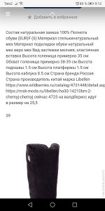Ботфорты очень красивые! Стразы качественные - и не вызывающие, но блестят. Теплые, несмотря на то, что евромех. Колодка удобная, если у вас полный размер, в связи с тем что мне размер большеват, пришлось положить полустельки - все выровнелось. Запакованы аккуратно, в коробке, каждый в своем мешочке. Очень рекомендую закупку и организатора