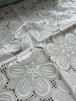 Симпатичная, но сильные заломы , видимо давно лежит. Мне в общем понравилась, собака все равно порвет . Нам скатерка месяц служит, не больше