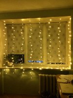 Световой занавес шикарен, повесила несмотря на то, что на дворе был октябрь. Дома прямо хюгге)) нужен переходник с китайской вилки. Дом из картона еще не собирала, лежит ждет нового года. Домик красивый, после падения не разлетелся, а всего лишь выпал светодиод снизу, немного клея и все на месте