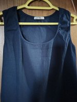 Впечатление не однозначное. Во-первых на мне сидит нормально, в талии (84см) немного широкова-то, а верх прям облегает, даже стягивает. Внешне выглЕщёВпечатление не однозначное. Во-первых на мне сидит нормально, в талии (84см) немного широкова-то, а верх прям облегает, даже стягивает. Внешне выглядишь, если не придираться, нормально. Ткань в рубчик сильно тянется, края пройм обшиты более плотной тканью. Может из-за этого идут волны. На фото видно. Фото спереди и сзади. Если для дома то пойдёт↑