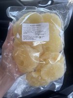 Кусочки цельные, не поломанные, на вид всё хорошо. Из консервантов в составе один- Е220. Ну хорошо, что только один, а так они везде в производстве
