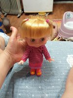 Кукла прикольная, говорит несколько фраз, поёт часть песни. Волосы не очень. Стрижка как тупым топором прошлись. На глазах деффект, пятно небольшое