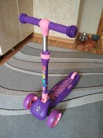 Огромное приогромное спасибо организатору. Цвет как и просила. Дочь будет в восторге. Отличный самокат. Соответствует фото. Колеса, ручка, основа силикон. Колеса светятся. 3 высоты ручки. Складной. Очень рада покупке. Спасибо спасибо спасибо ???