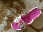 Супер-клёвые тапочки, уже есть такая модель в другом цвете, но они живут на даче у бабушки, дочь очень радуется, когда мы туда приезжаем и бегает в них с удовольствием. Взяла ещё одни для прогулок во дворе в прохладную погоду, на ногу 16,4 см в самый раз, стелька 17 см до загиба под пятку, с загибом до самого края 17,5 см