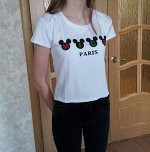 Футболочки сшиты из мягкого синтетического трикотажа, приятные на ощупь. Рисунок точь в точь как на картинке. Ширина футболки под мышками 39 см, длина футболки 43 см, укороченная, на рост 160 см немного ниже пупа. Фото прилагаю