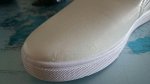 Вчера забрала свои белые слипоны. На картинке чисто белые, на самом деле цвет с желтизной, но это мелочи, как говорится. Грязные пятки изнутри, внутри на стельке следы от ног- либо ношеные, либо примерочный вариант, + на носке замазано белой краской повреждение. Это явный брак! поэтому возврат