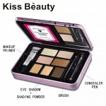 Матовая палетка совсем не матовая оказалась, матовые только два оттенка первых во втором ряду, остальные сатиновые. Самый пигментированный и красивый последний ряд в палетке, черный прям насыщенный, что большая редкость в палетках. Набор для макияжа в жестяном футляре, внутри красивые сатиновые оттенки хайлайтером, нижний ряд матовые оттенки для контурирования. Также в палетке праймер для лица, консилер в виде карандашика и маленькая кистосточка для его растушевки