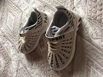 Спасибо. на годик слегка большеваты, на лето хватит,если не порвутся. Коричневые были с небольшим запахом,вроде,уже выветривается. Белые уже надевали, смотрятся модно. дописываю через две недели: носим с удовольствием и часто. порвалась только резинка-шнурок на коричневом кроссовке,но можно поправить. думаю,что буду еще участвовать