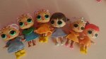 Куколки разные, одежда и обувь не снимается, есть аксессуары, на одной кукле краска облетела