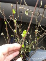 Сакура розовая одна тоненькая веточка и без листьев , посмотрим отойдёт или нет, остальные с листьями , Спасибо! Дополняю 20.06 Сакура розовая с низу вверх до половины отросла зелёными листиками, буду растить дальше Белая выросла хорошо в два раза и вообще она была на много толще Сирень хорошо отросла
