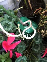 Такой хиленький посмотрим выживет или нет… корень кажется живым. Сам клематис представляет из себя тоненькие ниточки . Не сфотографировала
