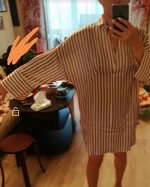 Рубашка-платье оставляет желать лучшего, ткань тонюсенькая вся светится за её цена 300 рублей, даже в поистрой стремно высьавлять, хотя работа орга на пятерочку заказ почти на неделю раньше пришел
