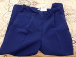 Ничего общего с фото товара на сайте и в реале нет. Брюки красивого голубого цвета, без защипов спереди . А по факту темно синий цвет, за счет защипов на об 100 огромные( я даже не рассматриваю покупки брюк с таким кроем, не моё лекало), ткань не плохая. Кому-то надо пристраивать. Печалька. К оргу претензий нет