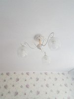 Люстра оч красивая, в наш интерьер вписалась идеально, плафоны тканевые, смотрится уютно и дорого. Довольна. Цена отличная. Спасибо. Теперь ещё бра в комплект надо)