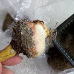 Заказ пришёл на точку 9 марта. Корешки отдельно от луковиц, одна из которых подпорченная и в плесени. Надеюсь, растения выживут после такого с ними обращения(