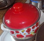 Красивые,небольшие кастрюльки. Спасибо! П.С: спустя пять месяцев использования под окантовкой на крышках появилась ржавчина, вытекает ржавая вода, кастрюли внутри темнеют быстро. При чем кастрюлей с маками пользовалась раза четыре,варила компот в ней, а на ней ржавчина появилась вперед. Добавила фото