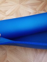 Коврик очень необычный, из пены какой-то резиновой, очень мягкий, не скользят ноги на нем, а в позе"собакамордойвниз", например, растягивается вместе с ногами. Не заворачиваются края. Толщина реально 9-10 мм. Носки хорошо налезли на 40 размер, жаль что почти белые. Однозначно рекомендую