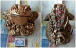 Сова пришла "Не скажу". Лапки не стоят на поверхности, а немного "висят" в воздухе, со стороны не очень заметно, если не приглядываться. Сова темно-синего цвета с чуть фиолетовым оттенком, легкая, устойчивая; идет в картонной коробке. Написано, что из пластика. Жаба большая)) Сделана из гипса на Украине, в г. Славянск. Не очень аккуратное исполнение, кое-где виднеется клей, на который приклеены стразы, на моей жабке подклеенный скол на губе. Но в целом, довольна. В длину по основанию приблизительно 18,5 см, Ш ~17,5cm, вес ~1,2 кг. Организатор очень тщательно упаковал фигурки
