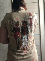 50 размер брала на фигуру 105/85/107 (обычно ношу одежду 48-50, не люблю свободную). У данной модели на талии резинка+ на спине разрез (смотрите фото), поэтому она подойдёт даже на беременную. В груди и в области талии свободненько мне как и задумано по дизайну.