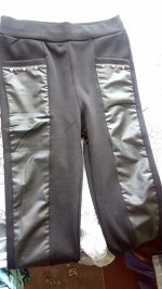 В описании сказано про флис. Но! Никакого флиса тут нет! На фото изображена вся передняя часть под кожу. На моих штанах из этой ткани только половина передней части. Смотрится глупо! Карман не на задней части, а на передней. Это другие штаны