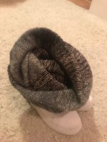 Все, как на фото. Шарф тоненький, приятный на ощупь, спасибо. Шапки с искусственным бубоном, тонковаты. Ещё не пробывали при морозе, но скорее всего с капюшоном. Закупкой довольна