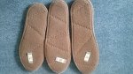 Стельки понравились. Верхний слой шерсть, нижний наподобие войлока. Оба слоя хорошо сшиты оверлоком по периметру, кроме того несколько швов поперёк, точнее по диагонали стельки. Размер 37й-24 см в длину