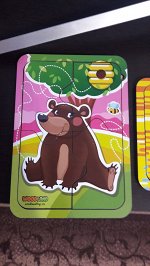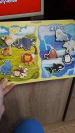 Отличные пазлы! За такое качество не жалко этих денег. Рекомендуем всем без сомнений. Работой этого орга всегда довольны, хотя крайне редко все ж случаются мелкие недочеты. Вот на этот раз игра Монтессори пришла немного поврежденная на лицевой стороне. И только потому, что держатели подсунули под пленку, надорвав ее (а можно было просто приклеить их скотчем поверх упаковочной пленки), и под весом других заказов при транспортировке эти держатели продавили и слегка оцарапали поверхность доски