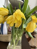 Тюльпаны свежие, но кривые. По букетам разделить не получилось, пришлось оставить себе