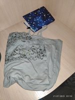 Брала для дома. Ткань хлопок(тонкая), на фото выглядет плотнее. На мой 48 размер взяла 50 размер. Подошёл. Ткань нормальная, но вот брительки , о