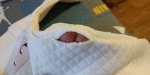 Товар хороший, качественный! Муслиновая пеленка достаточно большая, мягенькая и плотная, я думала даже будет потоньше. Слип цветной мягенький и не тонкий. Слип с серыми манжетами и розовыми ракушками хорошо тянется и на ручках и ножках есть отвороты чтобы закрыть ... комфортер немного мелковат по размеру. Зайка в розовом очень клевый. Организатору спасибо, буду еще участвовать обязательно