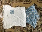 Костюм хороший, маломерит. Халат синий никакой не трикотаж, ситец очень тонкий, просвечивается, ужас. Остальные халатики супер