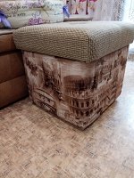 Отличный пуфик - внутри место для какой нить мелочи. Крышка поджимается в сторону