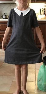 Вещи хорошие, на рост 107 см платья по колено, но смотрятся хорошо. Футболка "француженка" укороченная, на фото не было этого видно, но смотрится хорошо