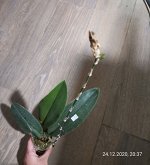 Цветок пришёл отцветшим, но крепкий. И цветонос и листья целые. Спустя 6 недель на цветоносе уже что-то пробивается. Через некоторое время дополню о