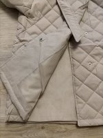 Полностью как на фото. Качество ткани и пошива хорошие (фото прилагаю) . Для носки до +5, не ниже. На рост 160 чуть ниже колена. На ог96, от 70, об