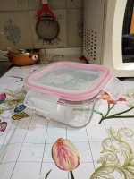 Как всегда все отлично. Контейнеры стеклянные, крышки не проливайки. Закрываются плотно. Сковорода отличная. Любимая закупка