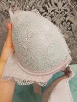 У бюстгальтера чашка мягкая, шов посередине. От фото отличается. Белье размерной сетке соответствует, качество хорошее