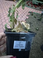 Хризантема пришла с пересохшей корневой системой, листья завяли, осталось даа верхних бледных листика, очень надеюсь что выживет