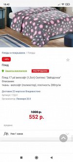 отзыв отрицательный плед заявлен как 1.5 спалный по факту пришло нечто размером 1Х1.5 то есть такой размер только младенцу подойдет ответ продавца что так написано не соответсвует действительности там нет не ничего про 1.5 спальный размер все на фото в результате 700 руб! в помойку