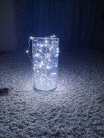 На коробке гирлянды написано 5 м,но мне кажется метра 3. Дед мороз светильник светит слабо. Вторая наклейка в виде колокольчиков очень понравилась,светит разными режимами