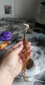 Отличный корень! Пока посадила в горшок, сразу пошёл в рост