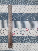 Закупку эту очень люблю. Раздача обычно раньше указанных сроков, большое спасибо! В этот раз понравились железные замОчки и якоря. А вот замОк для шкатулки не понравился, хотелось бы, чтобы закрывался поплотнее. Ткани перед работой сполоснула в мыльной теплой воде, фото добавила(ткани уже после сушки). Та, что с самолетиками совсем не полиняла. А вот красивая, морская..увы:((( С неё бежала синюшняя вода, я даже не ожидала такой линьки...нужно было добавить уксус...но уже поздно..насыщенный цвет ушёл , ещё и размыт по всей ткани. Такие планы были на эту ткань, что теперь с ней делать..не знаю Усадку дает с 1 метра-3см