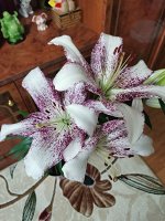 Некоторые сорта лилий перепутаны. Я все сорта подписала и высажила в горшки, так как, луковицы были проросшие и на улице они бы замерзли. Лилии расцвели совсем других сортов. Пока еще не все лилии расцвели, позже выложу фотки остальных лилий